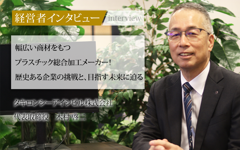 1956年創業のタキロンシーアイシビル株式会社は、プラスチック製品の製造販売、各種工事の設計・監理などを手がける、歴史ある企業だ。大阪に本社を構え、全国で事業を展開している。タキロンシーアイ株式会社を中核とする合成樹脂加工の総合メーカー「タキロンシーアイグループ」の一員であり、2021年にはインフラ関連事業を担うグループ各社が経営統合され、現在の体制が整った。今では業界を牽引する存在として、幅広い商材を展開している。その代表取締役である木村啓二氏に、これまでの歩みと今後の展望について話を聞いた。