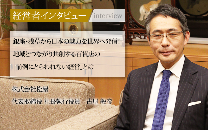 銀座・浅草という、東京を代表する2つのエリアに百貨店を構える、株式会社松屋。日本の伝統文化と最先端のファッションを発信する「松屋銀座」、下町の銘菓を多くそろえたモダンな外観の「松屋浅草」は、今や国内外からたくさんの人が訪れる名所となっている。