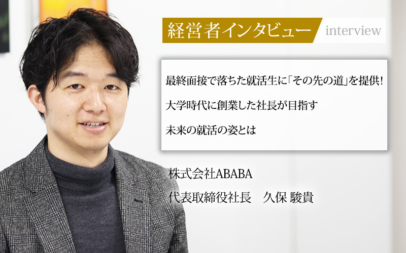 学生の就職活動において、最終面接で落とされた場合のダメージは大きいものだ。それまでの積み重ねを考えると、再チャレンジの気力を失う人もいることだろう。そんな学生の努力を無駄にしたくないと考え、事業化に踏み切ったのが、株式会社ABABAの代表取締役社長である久保駿貴氏だ。
