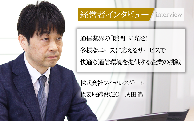 容量無制限で利用可能なWiMAXや公衆無線LAN、格安SIM、インバウンド向けeSIM(イーシム)など、顧客のニーズを満たすさまざまなサービスを提供している株式会社ワイヤレスゲート。同社は大手キャリアでは対応しきれない「隙間」のニーズに応える戦略で成長を続けてきた。リアル店舗とオンライン両方での販売体制を強みに事業を展開する、代表取締役CEOの成田徹氏に話を聞いた。