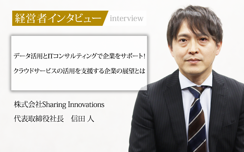 キャリアチェンジを重ねて着実にノウハウや知見を貯め、経営者として会社の成長に貢献している信田社長。自身が得意とするデータ活用とITコンサルティング領域は、まさにこれから多くの企業が必要とすることだろう。株式会社Sharing Innovationsは今後も企業の経営基盤を支えるDXパートナーとして、さらなる成長を後押ししていく。