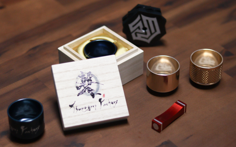 そこで、弊社の精密加工技術を活かして、「爪楊枝も置ける機能的なアルミの箸置き」や、ジュラルミンを削り出した「アルミニウム合金のおちょこ」などの製品を開発しました。最近では広島の「JAM MASSIVE(ジャム・マッシブ)」というレゲエグループとの交流から、レコード用スタビライザーも製品化しています。