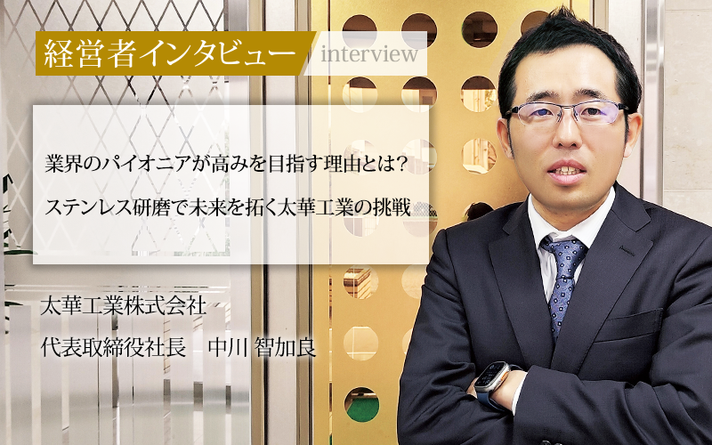 ステンレス研磨において、国内トップクラスのシェアを誇る太華工業。今後はさらなる高みを目標にしている。中川社長が高い目標を掲げるのは、ステンレスの可能性を広く人々へ伝え、地域や業界の将来に貢献したいという熱い思いがあるからだろう。ステンレスを通じてどのように社会を変えていくのか、同社の今後の動向に注目したい。