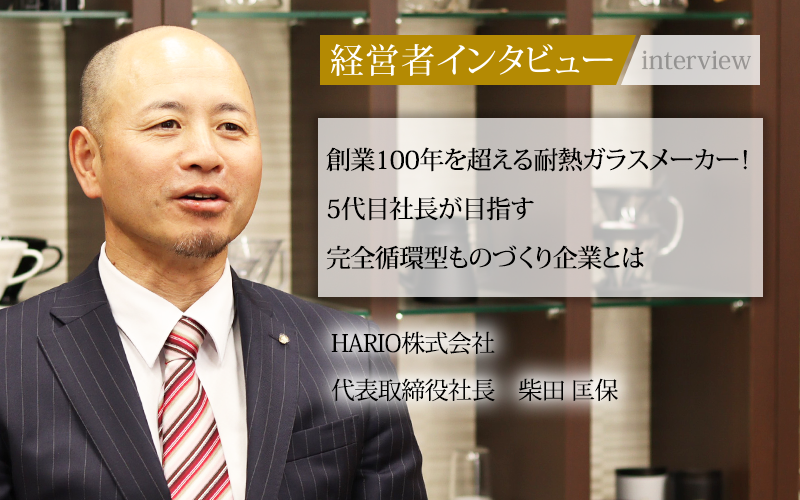 環境問題に関する意識が高まり続けている現代、創業100年を超え、高い技術力と環境に負荷を与えない素材を追求してきたのがHARIO株式会社だ。日本で唯一耐熱ガラスの国内生産工場を有し、海外での事業展開も進めている。歴史ある家業への思いや今後の展望について、柴田匡保氏に話を聞いた。
