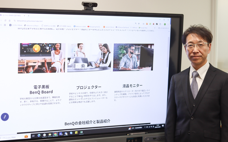 弊社はパソコンのモニターから、街頭にあるデジタルサイネージまで「液晶ディスプレイ」で話題になることが多いのですが、近年はその技術を活かして、「電子黒板 BenQ Board」の開発にも成功しました。プロジェクターとあわせて、学校などの教育現場にも少しずつ浸透しています。