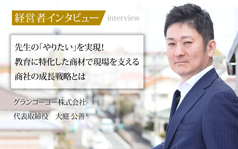 教育現場で必要とされるあらゆるものを取りそろえるグランコーヨー株式会社。同社は、小ロット多品種の特殊な要望にも柔軟に対応し、学校生活全般をトータルサポートしている。「先生が授業でやりたいことを実現するための調達代行業」という独自のポジションで教育現場を支える同社の取り組みについて、代表取締役の大庭公善氏に話を聞いた。