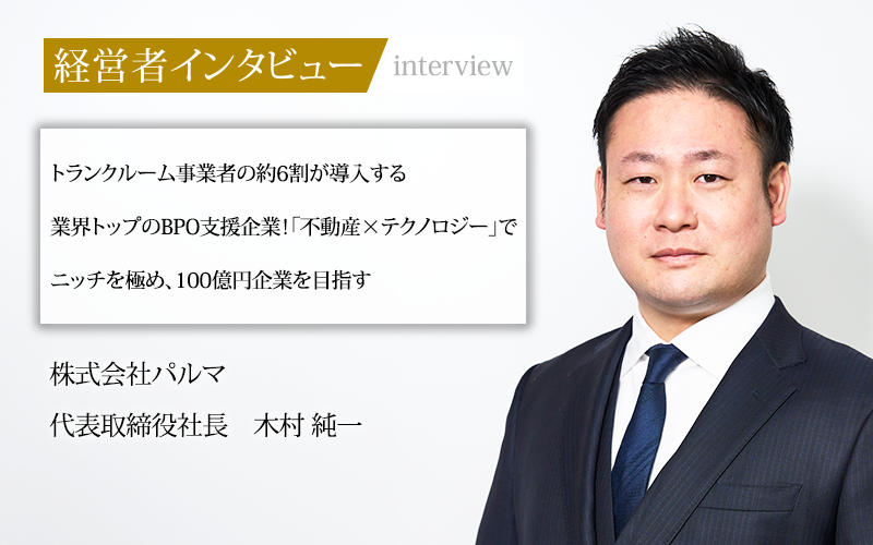 トランクルームという成長市場において、事業者と利用者をつなぐ“縁の下の力持ち”として圧倒的なシェアを誇る株式会社パルマ。BPO(ビジネス・プロセス・アウトソーシング)という形で、賃料保証から施設管理、コールセンター、さらには施設の開発支援まで一気通貫で提供できる体制を強みに、現在約400社以上のトランクルーム事業者から選ばれている。今回、2023年12月に社長に就任した木村純一氏に、同社の歩みと未来へのビジョンを聞いた。
