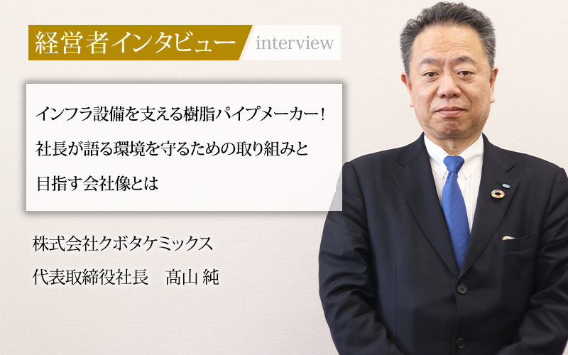 髙山純/1964年兵庫県生まれ。大阪府立大学卒業。1987年、久保田鉄工株式会社(現:株式会社クボタ)に入社。経営企画部部長を経て、2023年に株式会社クボタケミックスの代表取締役社長に就任。
