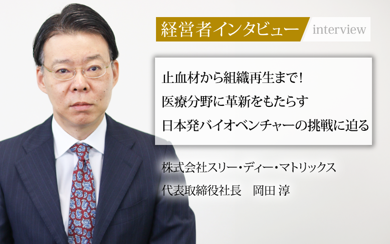 「人工物でもなく、動物由来でもない」という、第三の選択肢を医療にもたらすスリー・ディー・マトリックス。岡田社長の語る言葉からは、医療と技術の橋渡し役としての誇りと使命感が伝わってきた。人体に優しく、かつ効果的な素材が今後どれほどの医療革新をもたらすのか。ここから生まれる未来の医療シーンを想像すると、胸が高鳴った。