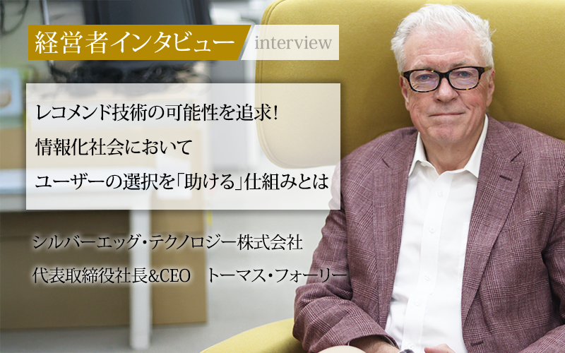 AIやデジタルシフトの進展に伴い、企業の顧客接点は激変した。一人ひとりに合ったサービスが求められ、レコメンド技術の重要性は高まっている。こうした潮流を牽引するのが、AIを活用したパーソナライゼーション・サービスのパイオニアである、シルバーエッグ・テクノロジー株式会社だ。代表取締役社長のトーマス・フォーリー氏に、起業のきっかけやレコメンド技術の未来について聞いた。