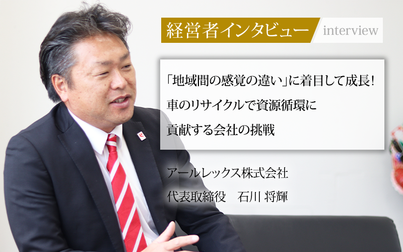 石川将輝/1979年、埼玉県生まれ。埼玉自動車大学校卒業後、有限会社昭和メタルに就職。2003年に石川商事株式会社に入社し、自動車リサイクル事業部を設立。2018年、アールレックス株式会社を創業し、代表取締役に就任。
