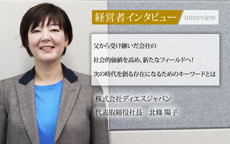 リユーストナー事業から始まり、オフィスを快適にするサービスを展開する株式会社ディエスジャパン。同社の代表取締役社長である北條陽子氏は、創業者である父から会社を受け継いだ2代目だ。