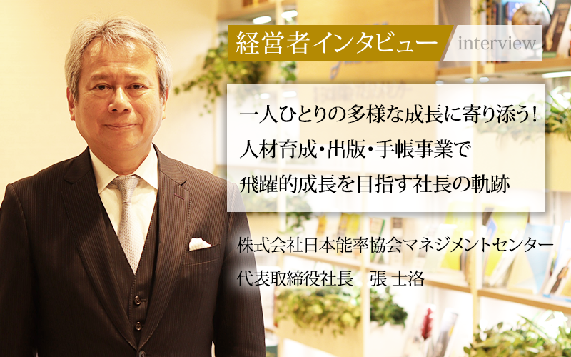 株式会社日本能率協会マネジメントセンターは「成長に、寄り添う。」というパーパスのもと、学びのデザイン事業(人材育成支援、出版)、時間<とき>デザイン事業(手帳)で企業や個人の成長をサポートしている。中でも同社が注力する「学びのデザイン」では、個人が望むキャリアや働き方を実現するために必要なスキルの習得を支援。「時間<とき>デザイン」では単なるスケジュール管理を超えて、人生を豊かにする「時間<とき>デザイン」の提案を行っている。対話を重視し、顧客のニーズに応える事業を展開する代表取締役社長の張士洛氏に話をうかがった。