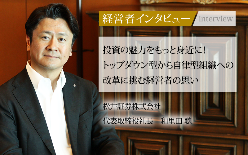 長年トップを務めてきた社長の交代を機に「自分たちの松井証券」へと変革を進める代表取締役社長の和里田聰氏に、新スローガン「投資をまじめに、おもしろく。」に込めたメッセージや、今後の展望などについて聞いた。