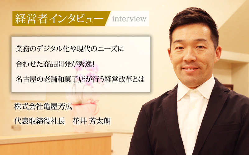米国の大学へ留学したときに、現地での和菓子の需要の高さを実感したという花井社長。業務のデジタル化や海外展開など、これまでの常識にとらわれず、新たな道を切り拓く姿が印象的だった。株式会社亀屋芳広は顧客一人ひとりの需要を形にしながら、時代にあった挑戦を続けていく。