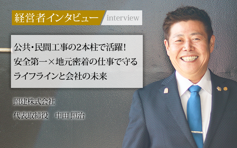 2006年に大阪府堺市で設立された照建株式会社。地元での存在感を高めながら、実績がなければ入札すら叶わない公共工事を多数勝ち取ってきた土木工事会社である。大きな特徴は、公共施設から民間施設まで、すべての工事を自社で担うワンストップ体制だ。代表取締役の中田照治氏に、創業の経緯や建設業界における強み、今後の展望をうかがった。