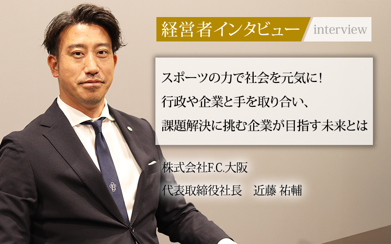 東大阪市を拠点に、地域発展のハブとしての役割を担う株式会社F.C.大阪。同社はJリーグに所属するプロサッカークラブ「FC大阪」の運営を主軸としながら、行政や企業と連携して地域や社会の課題解決にも積極的に取り組んでいる。プロサッカー選手から経営者へと転身した、同社代表取締役社長の近藤祐輔氏に話をうかがった。