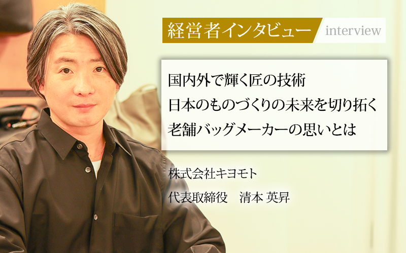 ベトナムの自社工場での海外ブランド向けOEM生産から、国内での高品質な日本製バッグの製造、そして自社ブランドの展開まで、幅広く事業を展開する株式会社キヨモト。近年は事業部間の垣根を超えた協働にも注力し、新たな価値創造に情熱を注いでいる。同社の3代目として、日本のものづくりの価値向上に挑む代表取締役、清本英昇氏に話をうかがった。