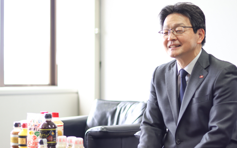 島本国一/1965年生まれ。1988年に長崎大学水産学部を卒業後、ケンコーマヨネーズ株式会社へ入社。ロングライフサラダの開発を中心に、総菜分野の開発リーダーとして従事。2011年に取締役(商品開発部門部門長)、購買部門、生産部門などを経て、2021年に取締役商品開発本部担当に就任。2023年、代表取締役社長に就任。