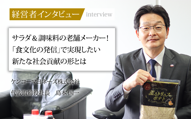 ケンコーマヨネーズグループとしては、サラダショップ事業や量販店向けパック総菜の製造・販売も手掛けている。代表取締役社長の島本国一氏に、入社後の取り組みやグループ全体の強み、今後の展望についてうかがった。