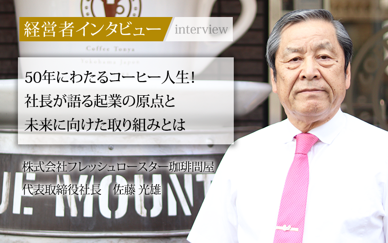株式会社フレッシュロースター珈琲問屋は、国内18拠点でコーヒー豆や紅茶、コーヒー器具、コーヒー飲料、コーヒーに関連した菓子など幅広い商品の卸・販売を行う企業だ。加えて、海外拠点への進出やECサイトの運営も手がけており、活躍の場は広がりを見せ続けている。同社の成長の背景には、一体どのような歴史があったのか。同社の代表取締役社長を務める佐藤光雄氏に話をうかがった。