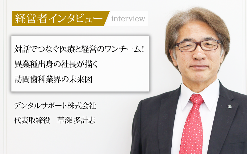 訪問歯科診療をサポートする専門家として、医療法人の支援を行っているデンタルサポート株式会社。超高齢社会を迎える日本において、通院困難な高齢者が増える中、同社の果たす役割は年々大きくなっている。