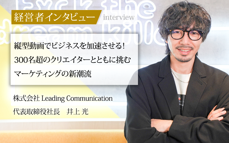 SNSの持つ可能性を最大限に引き出し、企業の課題解決を実現する株式会社 Leading Communication。TikTokを中心とした縦型動画マーケティングに特化した同社は、インフルエンサーの発掘・育成を行うプロダクション事業と、企業のSNS運用からインフルエンサーのキャスティング、広告配信までをトータルサポートするSNSマーケティング事業を軸に成長を続けている。