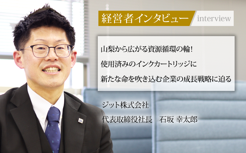 ジット株式会社は年間2500万個ものインクカートリッジを全国から回収し、山梨県の自社工場でリユースしている環境貢献型の企業だ。主力のリサイクルインクカートリッジ事業を軸に、流通や小型家電のリユースにも事業を拡大している。環境貢献と企業成長の両立を目指す同社の代表取締役社長、石坂幸太郎氏に話をうかがった。