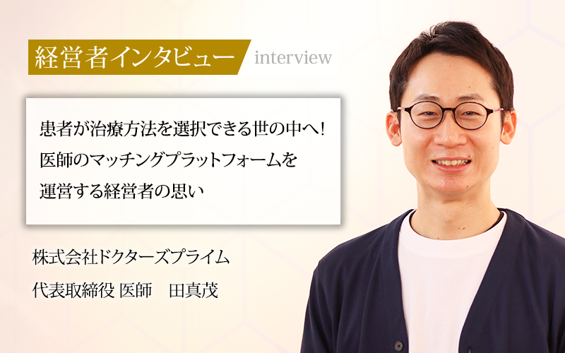 医師として医療現場で働いていたときに、「患者さんのための医療を提供したい」という思いから、経営者に転身した田社長。医師が正当に評価され、患者側は治療の選択ができる同社のサービスは、人手不足が深刻な医療業界の課題に大きく貢献することだろう。株式会社ドクターズプライムが、医療従事者と患者の救世主になると確信できるインタビューだった。