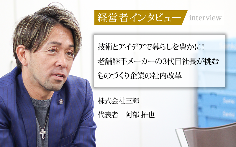 阿部拓也/1982年、東京都大田区生まれ。高校を卒業して社会人経験を積んだ後、人生を変えるべくロンドンに留学。帰国後はアパレル企業に入社。その後、2006年に株式会社三輝に入社。2014年に代表取締役に就任。
