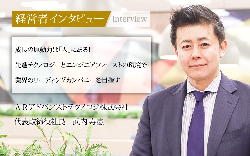 武内寿憲/大学卒業後、大手外資系企業に入社し、ITサービス部門で20代中盤からマネジャー職を務める。その後、独立系SIerに転職し、コンサルティングやシステム開発のマネジメントを担当。その後、経営参画を経て、代表まで務めた。2010年にARアドバンストテクノロジを創業し、現在に至る。