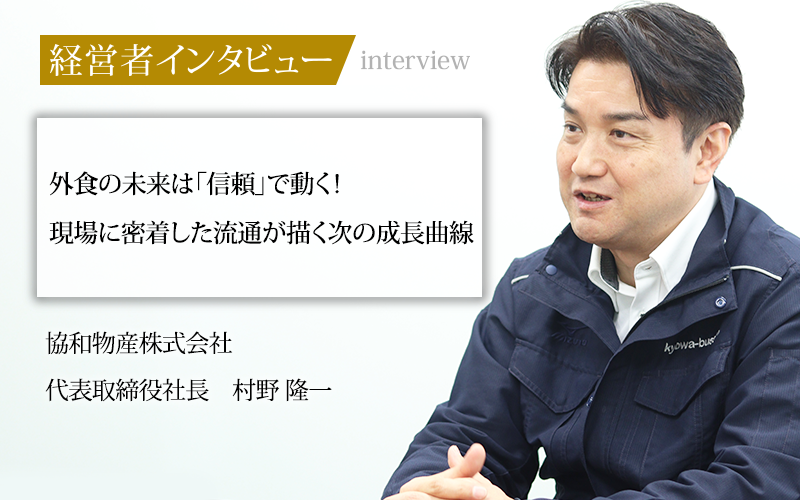 こうした激動の環境下で、現場密着型の営業体制と誠実な対応力を武器に、独自の成長を遂げてきた協和物産株式会社。今回は、代表取締役社長の村野隆一氏に、企業の強みや人材育成、外食業界の未来について話を聞いた。