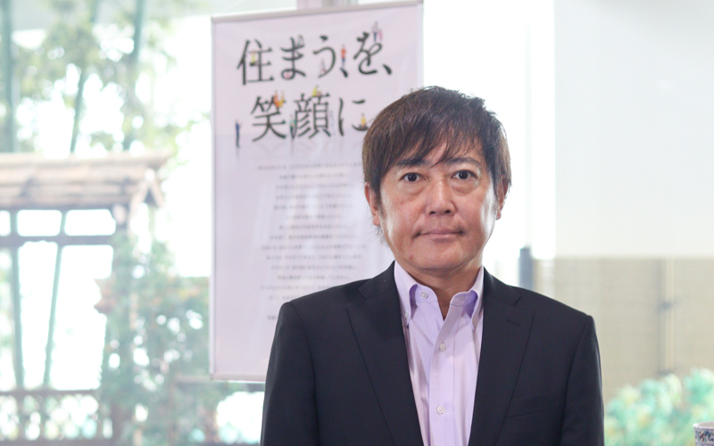 私たちは、「社員一人ひとりが誇りとやりがいを持てる会社」を目指しています。その象徴として、コーポレートスローガン「住まう、を、笑顔に。」を掲げました。この言葉には、社員自身が笑顔で仕事に取り組み、その笑顔がやがてお客様や取引先、ひいては社会全体へと広がっていく未来を願う想いが込められています。