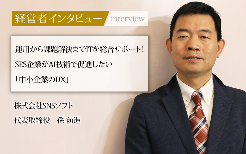 2013年に設立された株式会社SNSソフト。ITインフラの設計・構築を中心としたエンジニア人材の派遣サービスと、ITソリューションの提案力によって、取引を拡大してきた成長企業だ。さらに、人工知能(AI)の研究、金融システムや光触媒製品の開発など、その事業は多岐にわたる。代表取締役の孫前進氏に、創業の経緯や事業にかける思い、今後の展望をうかがった。