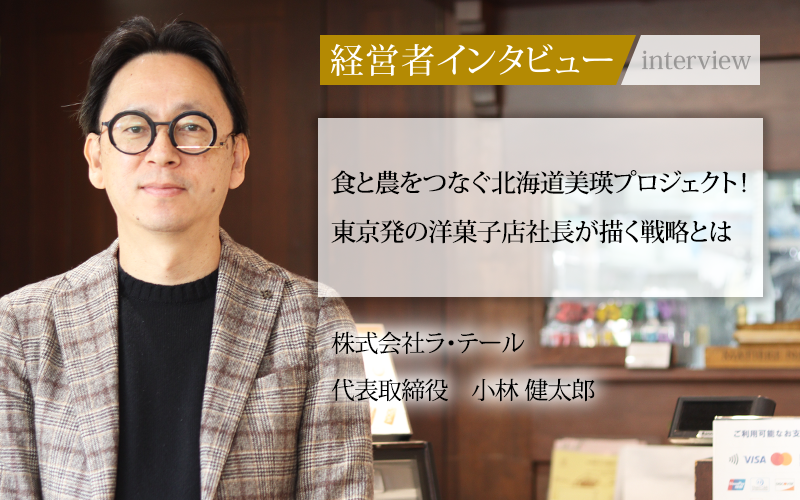 小林健太郎/1973年東京都生まれ、1995年法政大学法学部卒業。キリン・シーグラム株式会社へ入社。2001年に株式会社ミックブレインセンターに入社し、ラ・テールブランドの洋菓子、パンの製造販売、レストラン経営に携わる。現場での経験を積み、2007年に株式会社ラ・テールを設立し取締役に就任。2015年5月同社代表取締役に就任。2021年株式会社美十と資本業務提携を結びグループ入り、現在に至る。