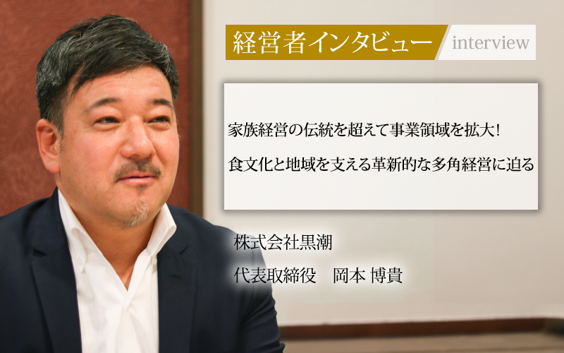 愛知県名古屋市を拠点に、弁当店、飲食店、ケータリングなど、多様な飲食サービスを展開する株式会社黒潮。2022年には有料老人ホーム事業にも参入し、事業領域を広げている。1950年に創業し、1977年に法人化された同社を2005年に30歳という若さで引き継いだのが代表取締役の岡本博貴氏だ。なぜそのタイミングで社長に就任したのか。また、幅広い事業はどのような理念に支えられているのか。同社の歩みとこれからの展望について話をうかがった。