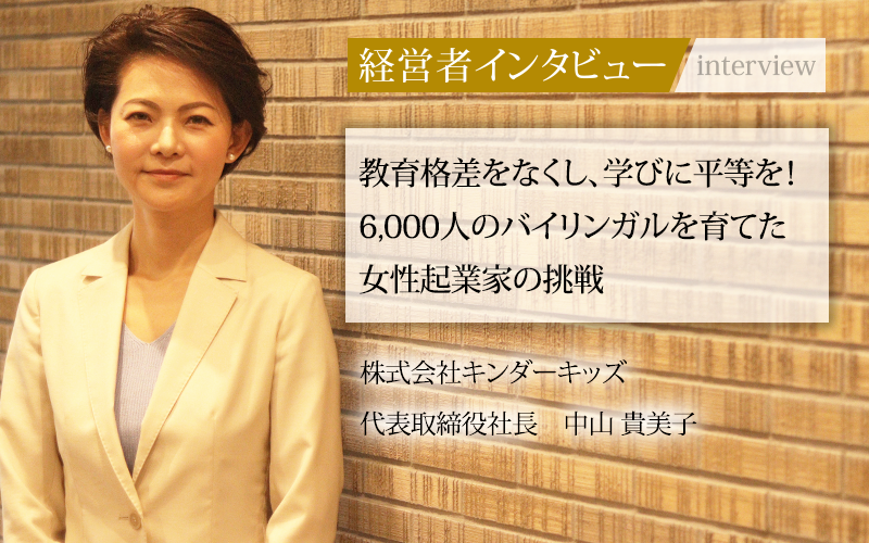 その設立背景には、代表取締役社長である中山貴美子氏自身のカナダ留学での原体験と、子どもたちの未来を考えた教育格差への強い問題意識があった。ゼロからのスタート、そして類を見ないスピードでの事業拡大を牽引してきた中山社長に、その軌跡と未来への展望をうかがった。