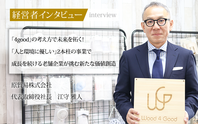 繊維製品からプリンター部材まで、幅広い製品を扱う原貿易株式会社。創業70年を迎えた同社は現在、ベビー用品を中心とした「繊維・生活関連事業」と、環境貢献型の「機能部材・資材関連事業」の2本柱で成長を続けている。その舵取りを担う、同社取締役社長の江守雅人氏に話をうかがった。