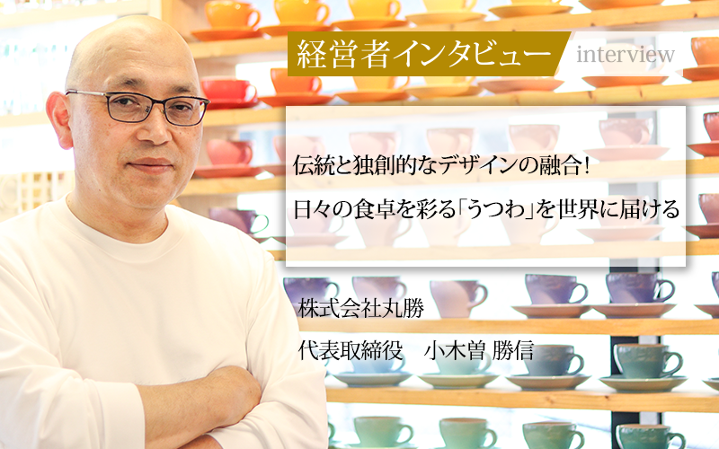 伝統的な美濃焼をベースにしつつ、斬新なアイデアとデザインが特徴で、国内外にその魅力を発信している。代表取締役の小木曽勝信氏は、波乱に富んだ経験を経て、唯一無二のうつわづくりと独自の経営戦略で同社を牽引してきた。これまでの道のり、丸勝の強み、そして未来への展望について話を聞いた。