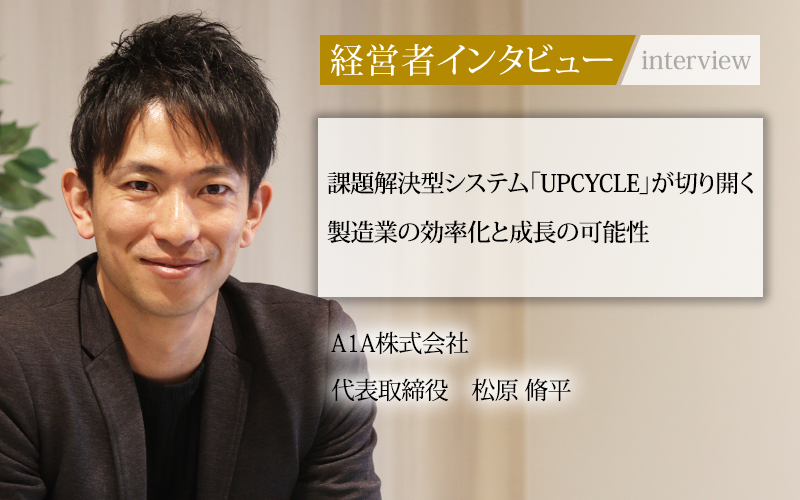 製造業の調達コスト最適化やデータ管理や事務処理の一元化という明確な課題に焦点を当て、顧客の困りごとに的確に対処して独自のシステムによる解決を図るA1A株式会社の松原脩平社長。前職での経験と疑問から派生した事業で、複雑な業務に忙殺されていた担当者にとって、開発システムの「UPCYCLE(アップサイクル)」は救世主となっている。コロナ禍での挫折を経て経営哲学を見直し、グローバル展開を視野に入れた成長戦略を持つ姿勢が印象的だった。