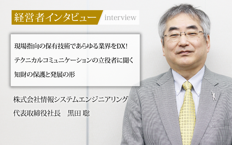 事業を通して、さまざまな業界にイノベーションを起こしてきた情報システムエンジニアリング。下請けである限り、どんなに優れた技術を開発しても、自社の保有知財としてアピールできない。かつての状況を必死に変えたからこそ、企業は損失を免れ、未来を掴めたのだろう。顧客開拓と固定資産づくりを両立する黒田社長は、自身の構想も特許と解釈し、会社の価値を高めた上で次世代に事業承継したいと語った。