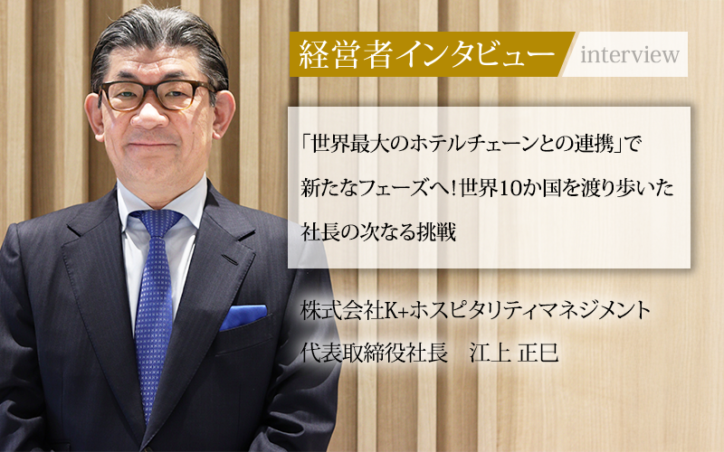 マリオット・インターナショナルと連携したホテル「フォーポイント フレックス by シェラトン」を、大都市や中核都市を中心に展開している株式会社K+ホスピタリティマネジメント。同社を率いるのは、外資系ホテルで30年以上の経験を積み、2024年に代表取締役社長となった江上正巳氏だ。同氏に、現職に辿り着くまでの道のりや同社の強み、今後のビジョンなどを聞いた。