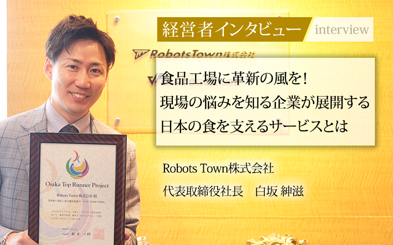 食品工場の自動化ソリューション事業や生産管理スキルUPの教育事業を展開するRobots Town株式会社。同社が運営する「FOOD TOWN(フードタウン)」は人手不足に悩む工場と機械メーカーをマッチングし、丁寧なヒアリングやAIを駆使した製品検索で最適な機械を提案している。2025年からは、「FOOD INNOVATOR(フードイノベーター)」というオンライン情報誌サービスや「食品プロジェクトマネージメント検定」も展開。機械化と人材育成の両輪で食品工場を支援する同社の代表取締役社長、白坂紳滋氏に話を聞いた。