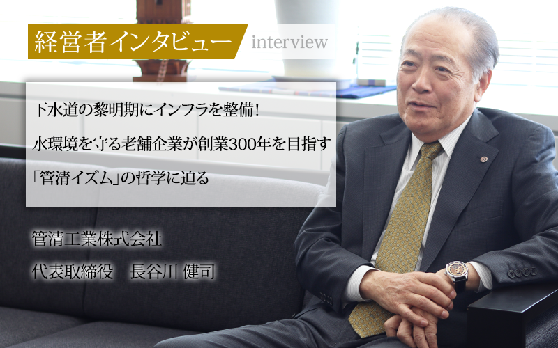 1962年に設立された管清工業株式会社。上下水道施設の維持管理をメインに、給排水設備や空調設備の設計・施工、測量・土木工事、さらに技術者の派遣事業、自社のノウハウを活かしたコンサルタント事業など、その事業は多岐にわたる。会社の前身は、建物の排水管や下水道管路の清掃・管理・機器販売事業で日本のインフラを支えてきた株式会社カンツールだ。同社の代表取締役を務める長谷川健司氏に、グループ企業ゆえの強みや今後の展望についてうかがった。