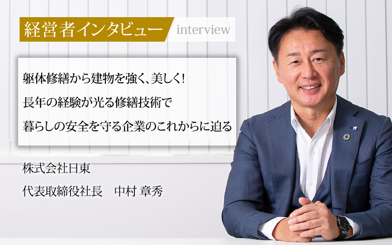 マンションやビルなどの大規模修繕工事をメインに事業を展開する株式会社日東。同社は創業以来、躯体補修の分野で確かな技術力で成長を続け多くのゼネコン・設計事務所から厚い信頼を獲得している。現在、YKK APグループの一員としてさらなる事業拡大に挑戦している同社の代表取締役社長、中村章秀氏に話をうかがった。