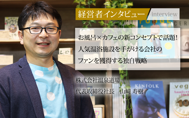 お風呂とカフェを一度に楽しめる「おふろcafé」という斬新なコンセプトで話題を呼んだ温泉道場。「おふろcafé」が多くの人に受け入れられたのは決して偶然ではなく、その背景に、会社員時代から高い熱量で日帰り温泉事業に取り組んできた山﨑社長の存在がある。