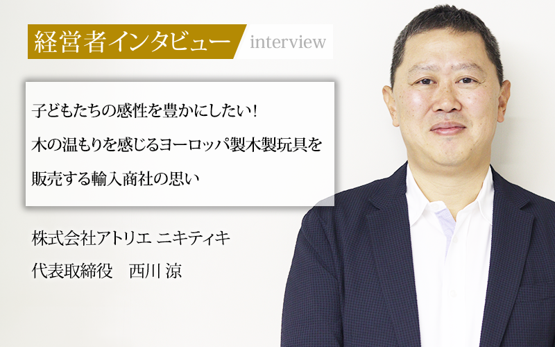 海外製の玩具を販売する仕事に携わるようになったきっかけや、商品の品質の高さにこだわる卸会社としての思いなどについて、代表取締役の西川涼氏にうかがった。