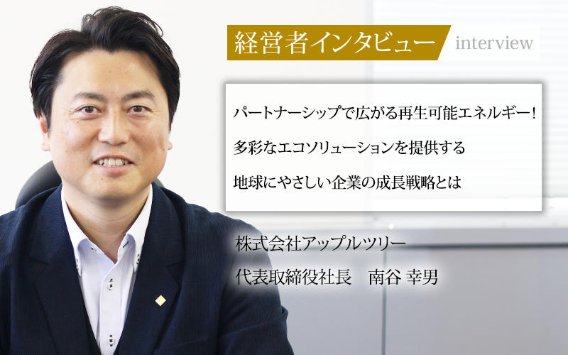 株式会社アップルツリーは、太陽光発電事業から環境配慮型LED照明の製造、環境コンサルティングまで幅広く展開する企業だ。「環境」を軸に据え、持続可能な社会の実現に向けた事業を推進している同社の挑戦について、代表取締役社長の南谷幸男氏に話を聞いた。