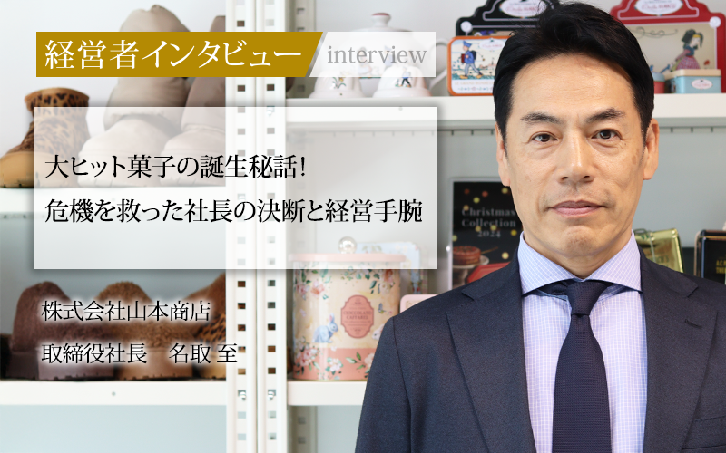 銀行員から一転、高校の同級生である株式会社山本商店オーナーからの「助けてくれ」の一言で食品商社の世界へ。取締役社長に就任したのは、会社が大きな困難に直面していた時期であった。名取至社長は、いかにしてその危機を乗り越えて再建し、新たな成長軌道へと導いたのか。銀行員時代の経験を活かした社内改革、起死回生の一手となった「東京ジャンドゥーヤチョコパイ」の開発秘話、そして「組織は1+1=2ではなく、5にも10にもなる」と語るその組織論に迫る。