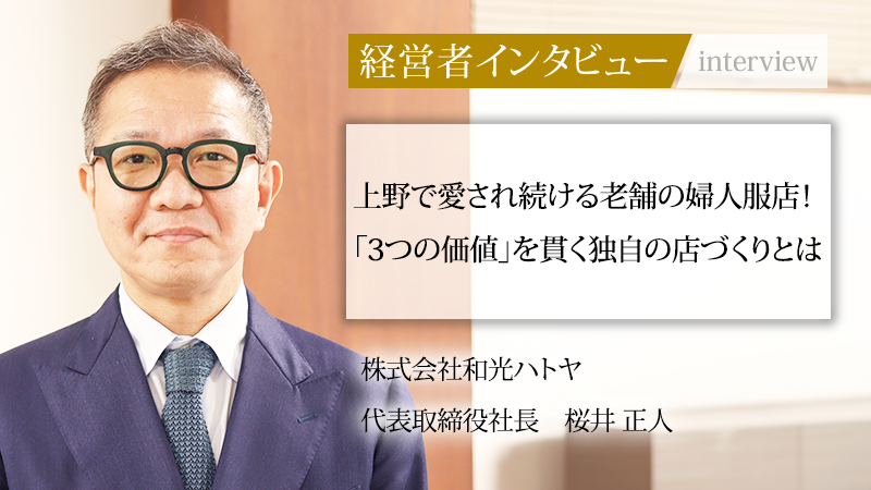 東京・上野の地で、長年にわたり多くの顧客に愛され続ける婦人服専門店を営む、株式会社和光ハトヤ。アットホームなおもてなしと、自社物件という強みを活かした他社とは一線を画す低価格戦略で、独自の地位を確立している。